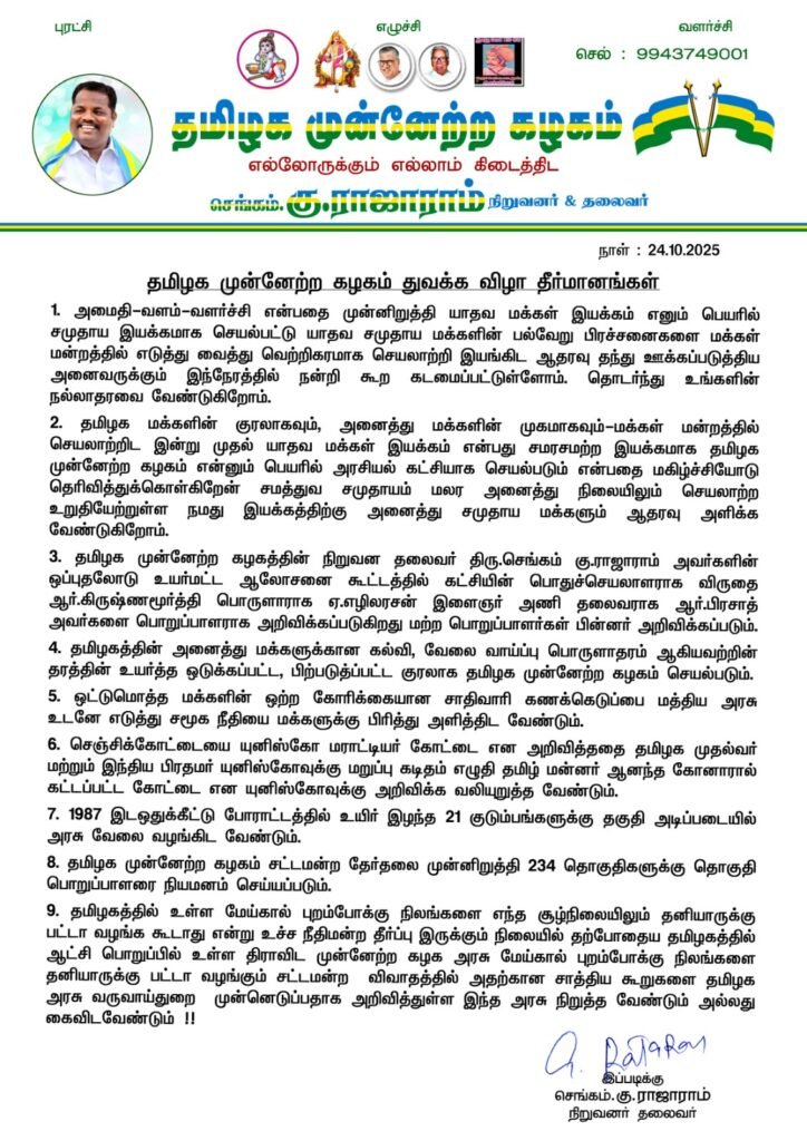 தமிழக முன்னேற்ற கழகத்தின் துவக்க விழா தீர்மானங்கள்