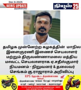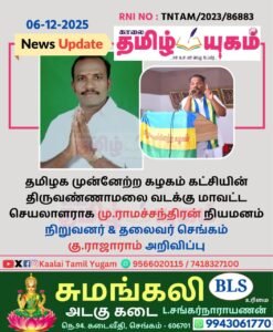 தமிழக முன்னேற்ற கழகத்தின் முதல் மாவட்ட நிர்வாகிகள் அறிவிப்பு