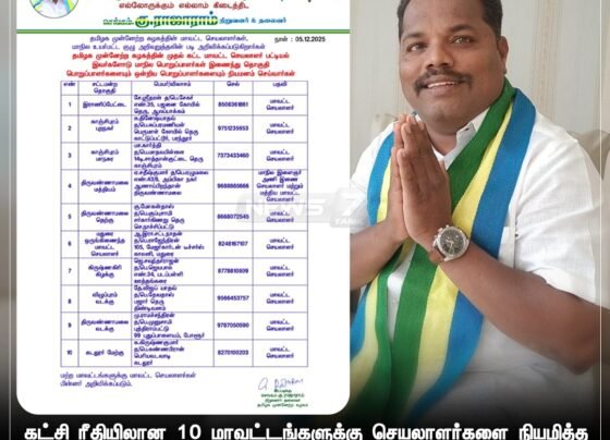 தமிழக முன்னேற்றக் கழகத்தின் மாவட்ட நிர்வாகிகள் நியமனத்திற்கு நன்றி
